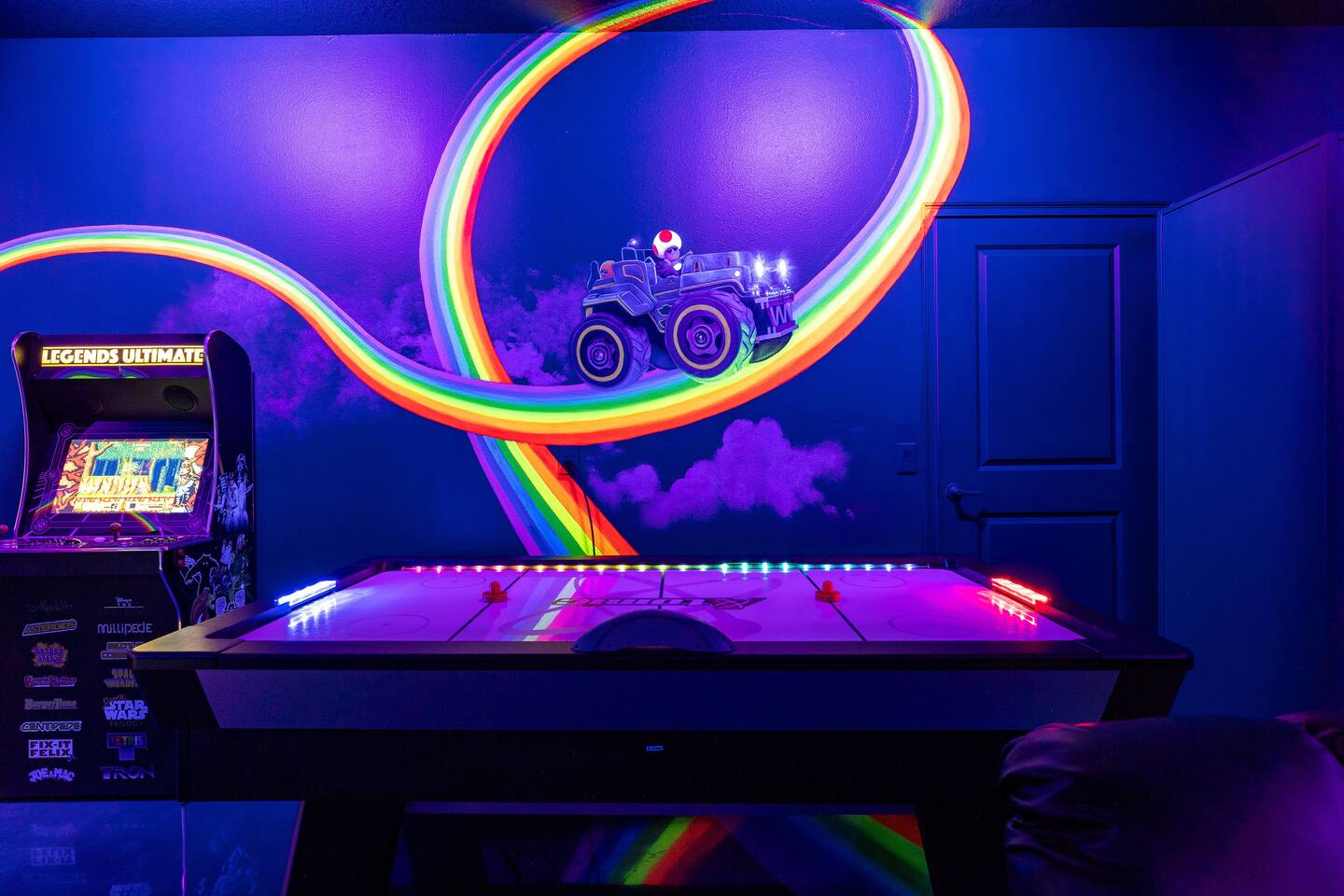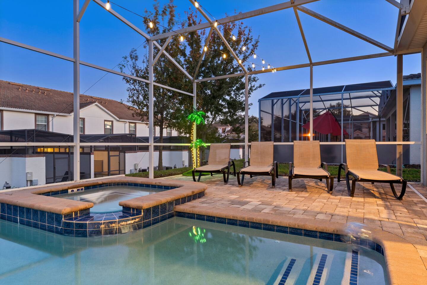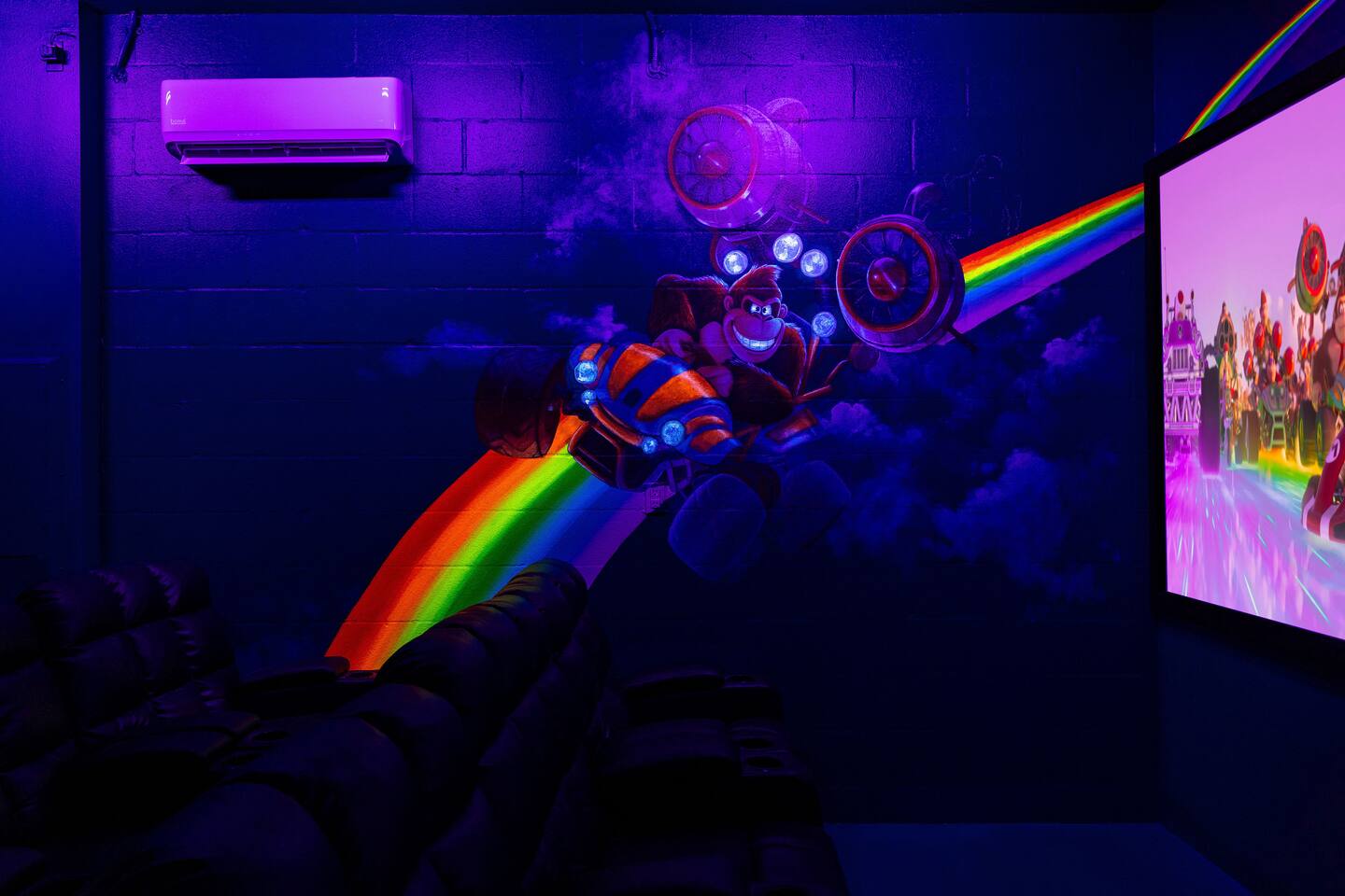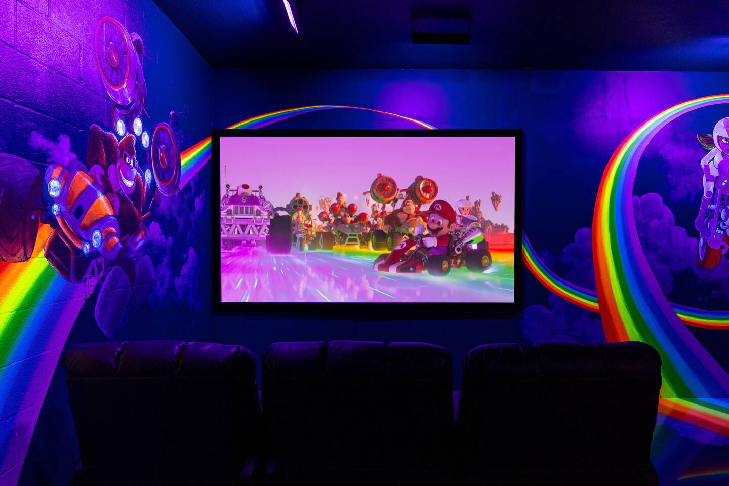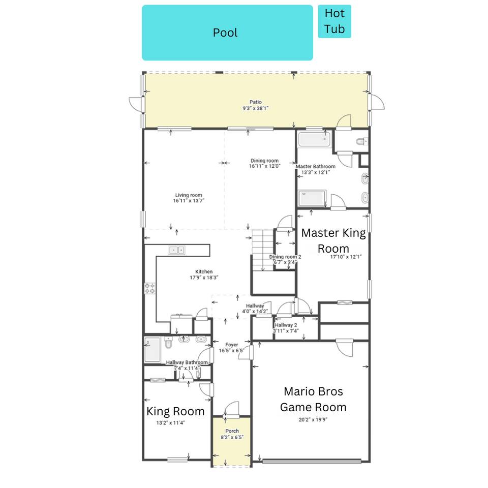 First Floor Walkthrough: Step into your luxurious vacation home and discover the highlights of the first floor. 🛏️ King Suites: Begin with two luxurious King Suites designed for ultimate comfort. Each suite features plush bedding and elegant decor, ensuring a restful night's sleep. 🛀 Ensuite Soaking Tub: Unwind in the spacious ensuite soaking tub, perfect for a relaxing bath after a day of exploring. 🖥️ Dedicated Workspace: You'll find a dedicated workspace, ideal for catching up on emails or planning your next adventure. 🛋️ Living and Dining Rooms: Enjoy the spacious Living and Dining rooms adorned with tropical decor, creating a warm and inviting atmosphere for your gatherings. 🍲 Fully Equipped Kitchen: Head to the fully equipped Kitchen, where you can whip up delicious home-cooked meals. This culinary haven has everything you need to make your stay delightful. 🎮 Mario Themed Game Room and Cinema: Immerse yourself in the fully immersive Mario-themed game room and Cinema. Play classic arcade games, now with a Pacman machine in place of the previous Donkey Kong. Challenge friends at the air hockey table and billiards, or relax in the lounge space while watching your favorite movies. 🏊 Private Pool and Lanai: Step outside to your enclosed private pool and lanai, where you can enjoy outdoor dining and lounge space. It's perfect for soaking up the sun and enjoying the Florida weather. Second Floor Walkthrough: Head upstairs to continue your exploration of the Orlando Barbie Dream House. 💄 Barbie Themed Bedroom: Start with the iconic Barbie themed bedroom featuring 4 queen-sized beds, creating a whimsical and comfortable space for your group. 🛋️ Barbie Themed Loft: Relax in the Barbie themed Loft, an ideal spot for leisure and fun. It's a great place to unwind and enjoy some downtime. 📷 Custom Barbie Box Photo Booth: Don’t forget to snap a photo in your custom Barbie Box photo booth, capturing memories of your unique stay. 🛏️ King Bedrooms: Discover three additional King Bedrooms, each thoughtfully designed to ensure you sleep soundly. 🕸️ Spiderverse and Star Wars Themed Rooms: For a more immersive experience, explore the Spiderverse themed room with a bunk bed (2x Twin) and the Star Wars themed room with twin beds, perfect for creating memorable adventures. As our guest, you’ll enjoy access to The Oasis Club and The Retreat Club, featuring resort-style amenities. You'll also have access to newly refreshed tennis courts and expanded pickleball courts, offering more space for our growing pickleball community. Enjoy every moment in this stunning vacation home designed to provide luxury, excitement, and unforgettable experiences.