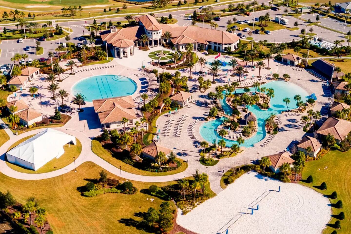 Amenities at Champions Gate Resort - Golfers' Paradise: Tee off at the Champions Gate Golf Club, featuring two championship courses designed by the legendary Greg Norman. Oasis Clubhouse - Bask in the sun by the resort-style pool, float along the lazy river, or enjoy thrilling water slides and a splash pad for endless fun. - Fitness Center with advanced cardio and strength-training equipment. - Enjoy casual dining at the Tiki Bar and Grill, catering to all tastes in a relaxed atmosphere. - Engage in friendly competition in the game room with pool, foosball, and air hockey, or immerse yourself in the latest movies and sports events at the on-site theater. - Playground area for the little ones to unleash their energy in the safe and enjoyable space - Concierge Services ready to assist with recommendations and information to enhance your stay.