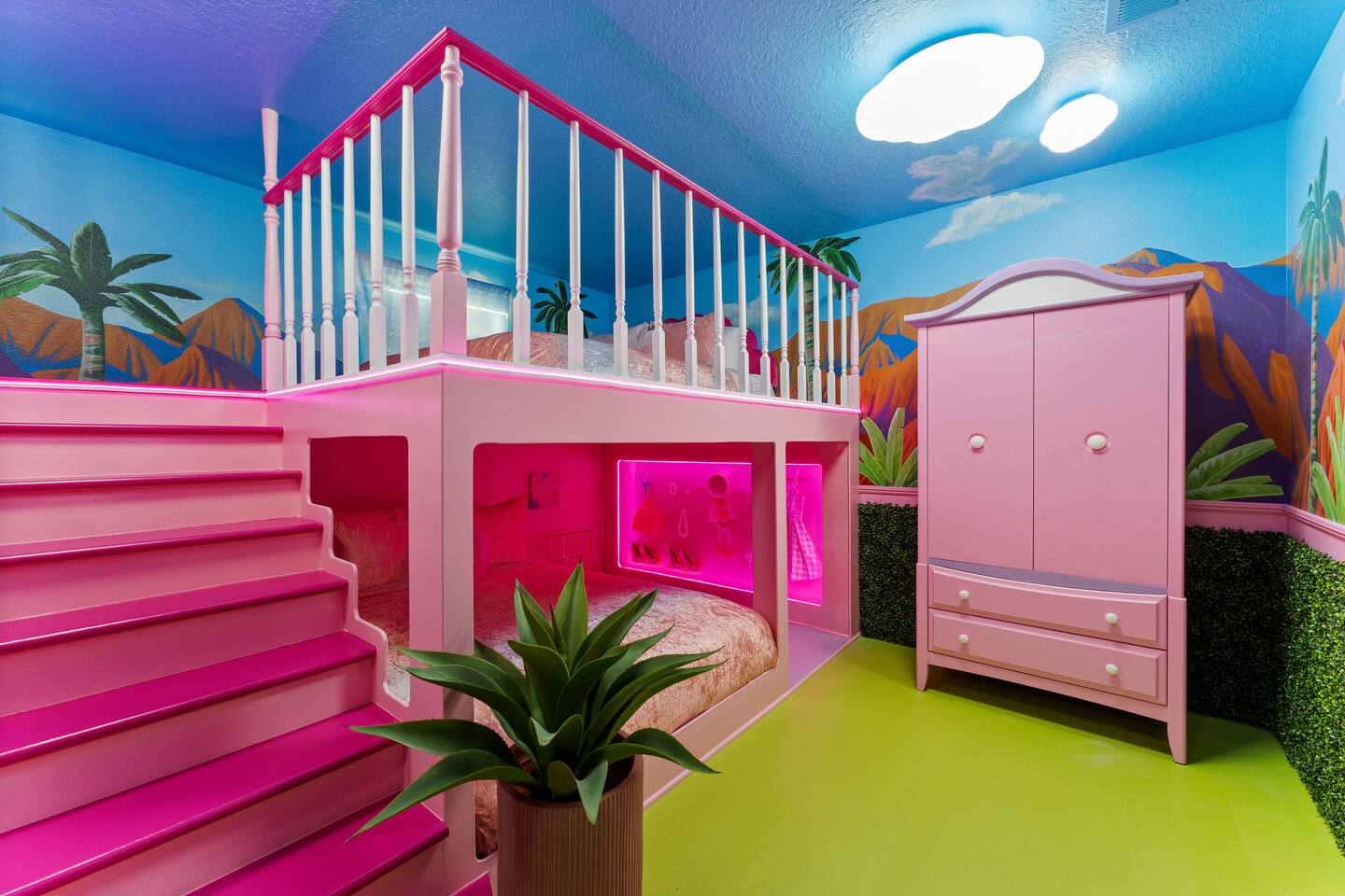 THE BEST Airbnb I stayed in in Orlando/davenport area it was peaceful spacious for my family of 9 and could have held many more we had so much fun the Barbie theme is so cool the resort is also so relaxing and kid friendly