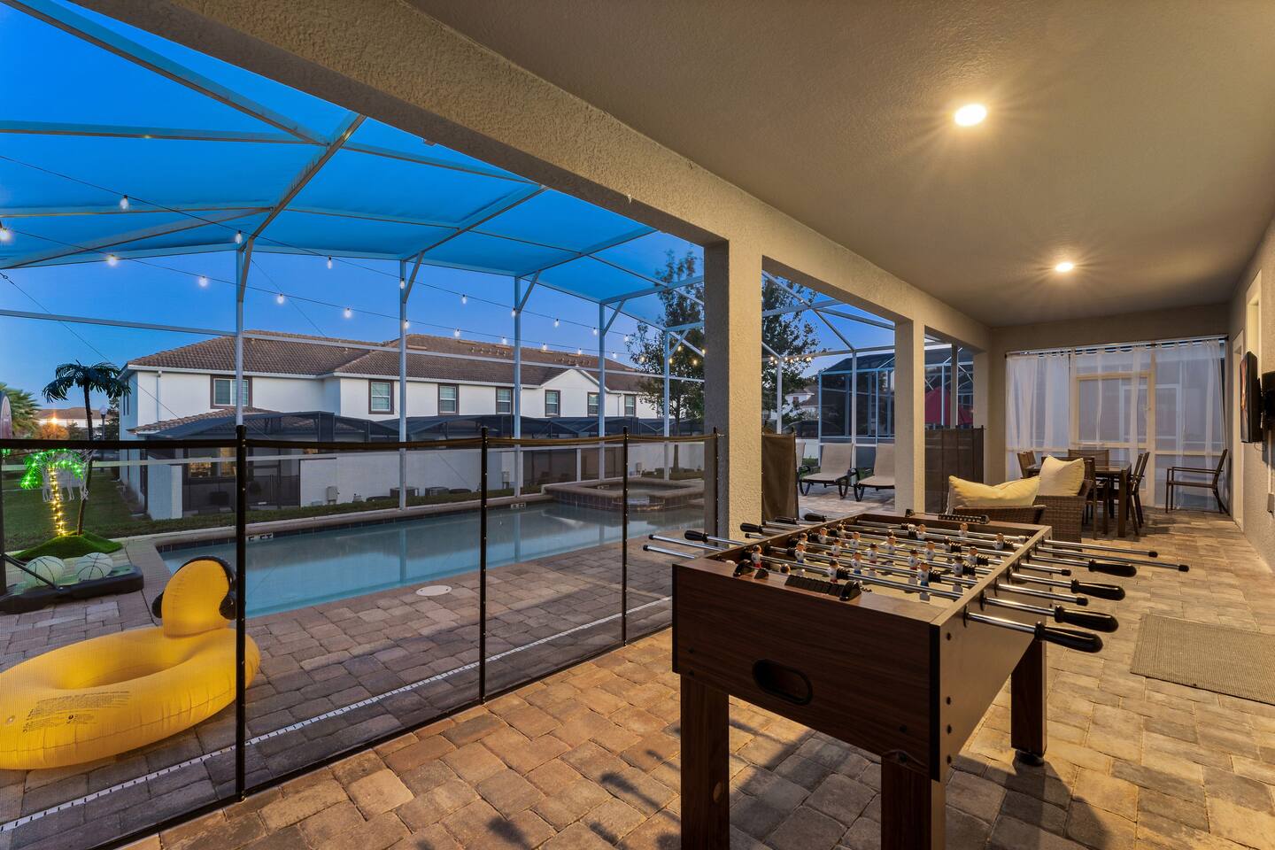 Relax in peace! Our secure gated community with smart home features gives you total comfort and privacy. Enjoy a private entrance with a unique code, and unwind by the pool (heating available upon request!). This home is perfect for groups (up to 24!), but keep it smoke-free and pet-free for everyone's enjoyment. While our home is designed to accommodate up to 24 guests, an additional charge of $10 per person, per night will be applied for groups exceeding 12 people. Please note that even if the extra guests are only staying for part of the reservation, the fee will still apply for the full duration, as we still need to put in additional supplies such as towels and other essentials. We have a propane grill available for rent, just let us know in advance if you’d like to use it and we'll get you set up! Note: There are quiet hours from 10pm to 7am to respect fellow residents. Also, just a quick reminder that there may be possible waiting times at the neighborhood gate, particularly during the busy hours of 3-11 PM. We recommend planning your arrival accordingly to ensure a smooth entry.